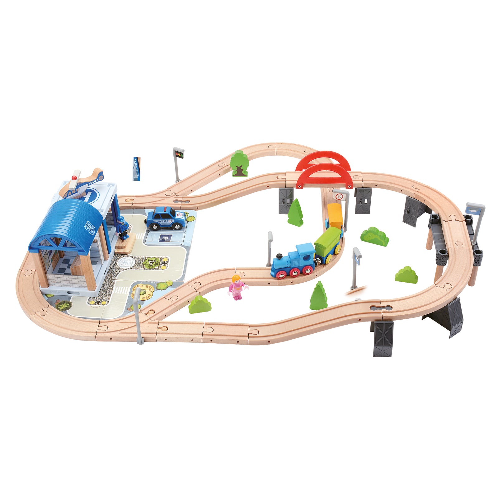 Bino Holzeisenbahn mit Brücke, 90 tlg.