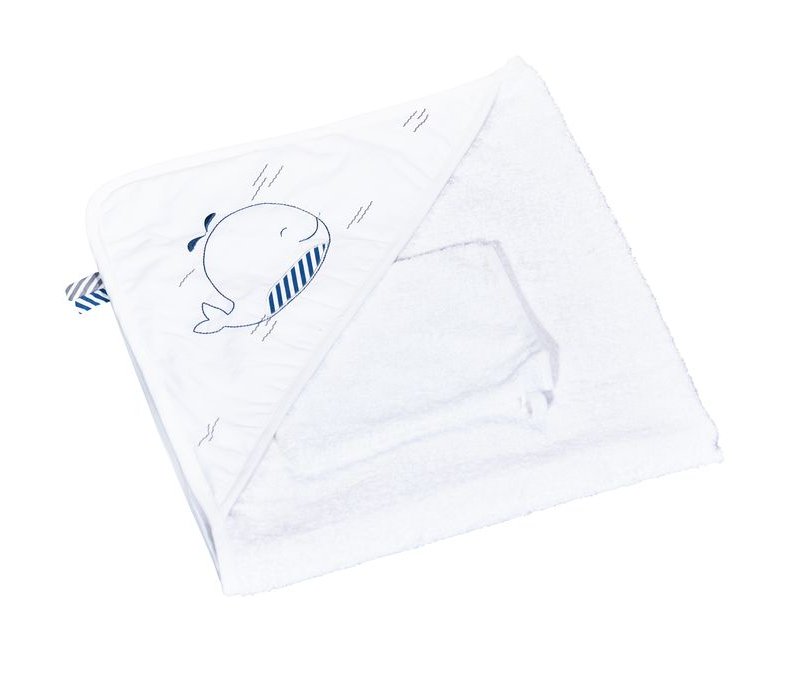Sauthon Kapuzenbadetuch und Waschlappen Blue Baleine