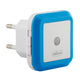 Bezug aus strapazierfähigem Stoff in modernen Farben, auf dem auch ein Aufnäher mit zwei lustigen Figuren in Form eines Engelchens und eines Teufelchens angebracht ist.