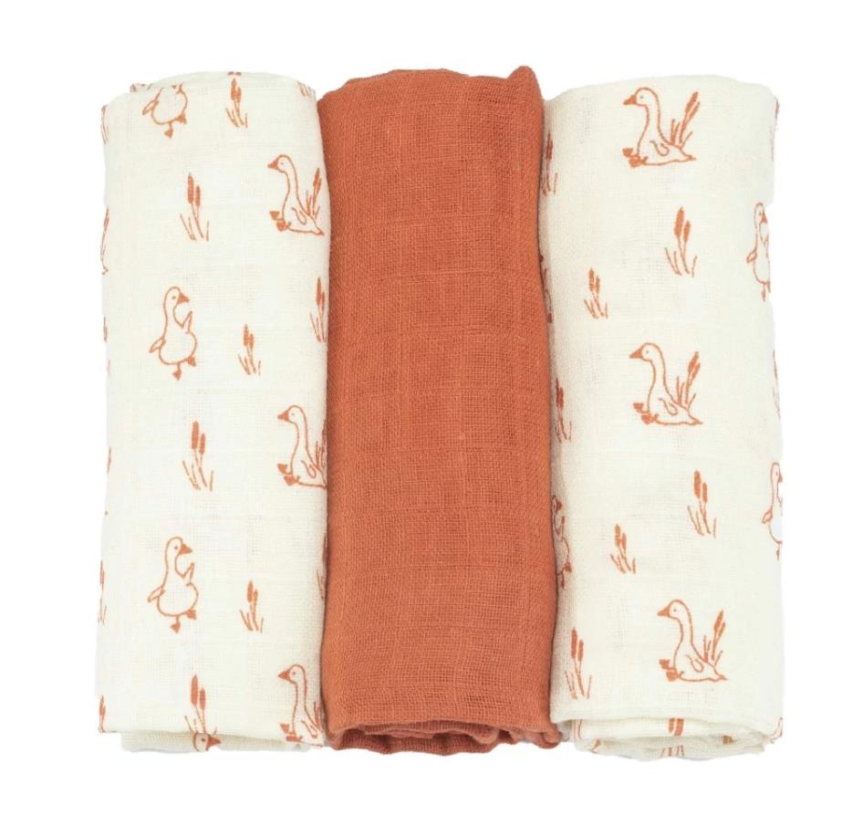 Trois Kilos Sept 3er Set Mullwindeln Gänse terracotta