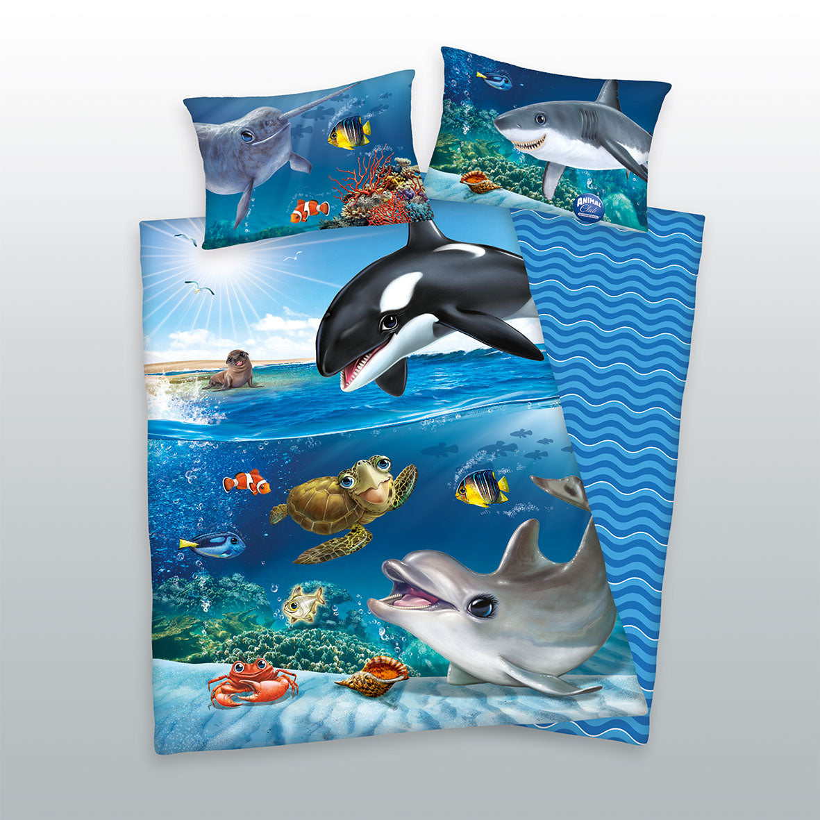 Herding Jugendbettwäsche CH-Grösse 160x210cm / 65x100cm Animal Club Ocean