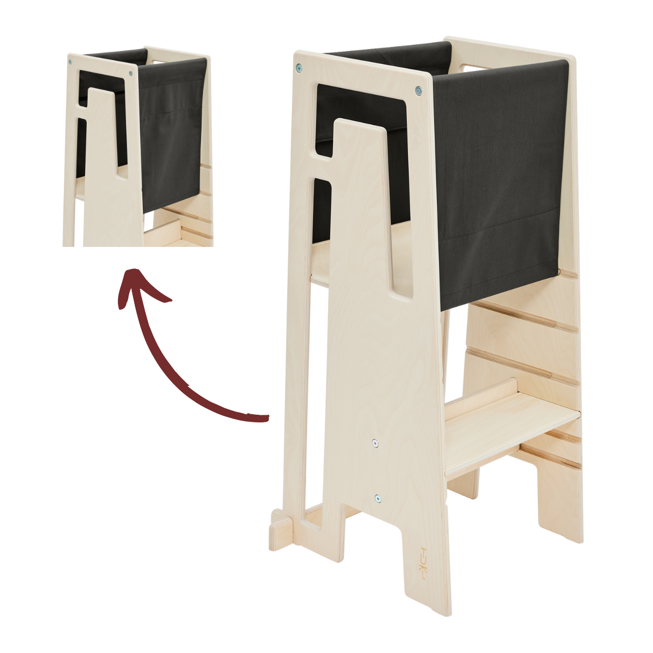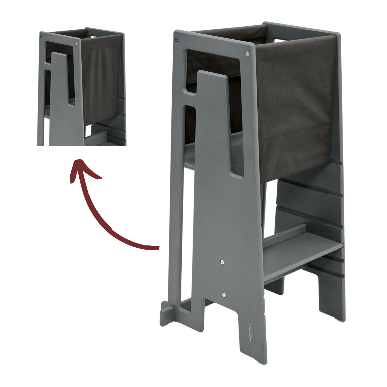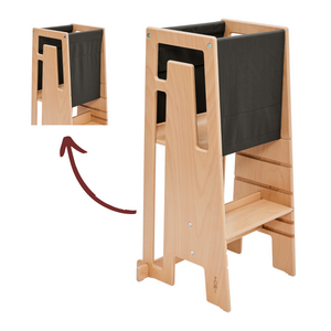 Das Tuki Entdeckertuch in dark olive ist ein stabiler Stoffeinsatz, der den Lernturm noch sicherer macht. Es wird einfach mit Klettverschlüssen an den Seiten befestigt und verhindert zuverlässig, dass Kinder herausfallen oder durchschlüpfen. So kann der Tuki Lernturm bereits ab dem Zeitpunkt genutzt werden, an dem das Kind sicher alleine stehen kann, und bietet zusätzlichen Schutz bei der Entdeckung der Umgebung.
