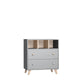 Diese Colette Kollektion ist in anthrazit gehalten und hat einen Eichenholzeffekt. Dank dieser Farbkombination wirkt das Zimmer anmutig und harmonisch. Die Wickelkommode hat 2 Schubladen, welche dir viel Stauraum bieten für alle möglichen Sachen. In den 3 offenen Ablagen, die du oberhalb der Schubladen findest, kannst du die Artikel für die tägliche Babypflege lagern. Dank dem Wickelansatz kannst du die Kommode zu einer Wickelkommode umfunktionieren. Der Wickelansatz wird von hinten und von unten an die Kommode geschraubt, so siehst du die Löcher nicht, wenn du den Wickelansatz mal nicht mehr brauchst. Der Ansatz ist für Wickelkissen bis zu 50 x 70 cm geeignet.